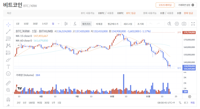 국내 시장도 하락세다. 국내 가상화폐 거래소 빗썸에서 BTC는 전일 대비 1.15% 하락한 1억 3490만 원을 기록했다. ETH는 2.35% 내린 444만 8000 원, XRP는 1.42% 떨어진 3117원, SOL는 1.22% 하락한 20만 1700원에 거래되고 있다.